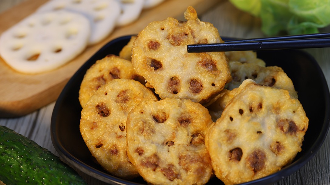 主料:藕片、豬肉、預拌粉、植物油、釀造醬油